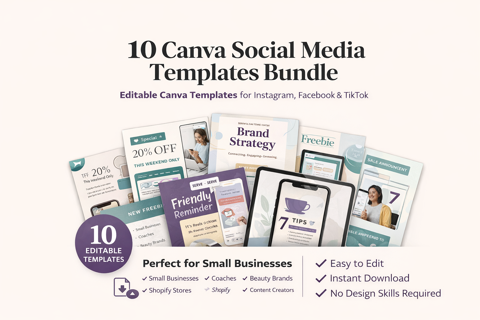 Streamline your content creation process with our editable Canva templates, designed to simplify your workflow. Whether you’re managing social media for Instagram, Facebook, or TikTok, these templates provide an effortless way to craft professional posts instantly.